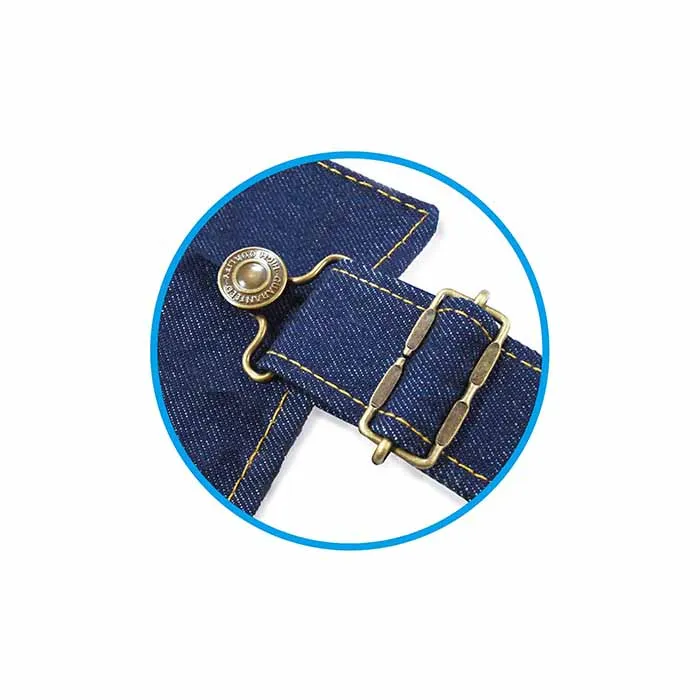 オーバーオールやサロペットなどの肩ヒモ調節にお使いいただける、タックボタンと移動カンがセットになった吊りカンです。