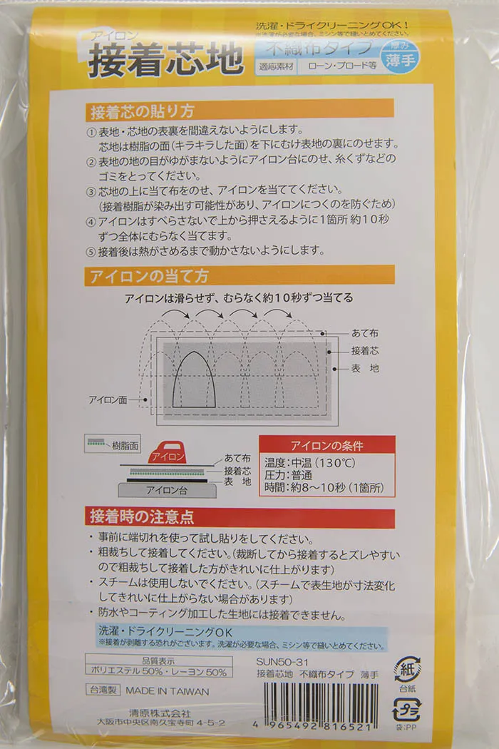 アイロン接着芯地 不織布タイプ-薄手(ホワイト)