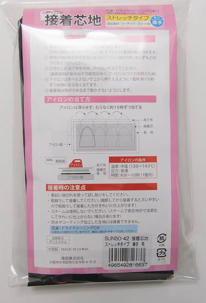 アイロン接着芯地 ストレッチタイプ-薄手(黒)