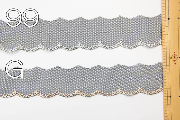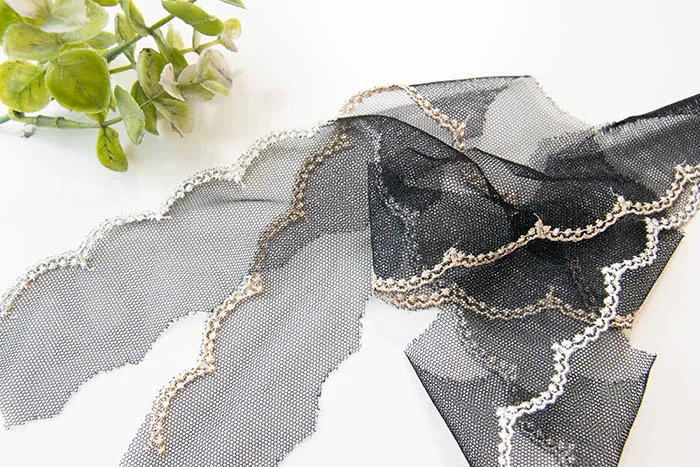 布やチュールなどに透かし模様の刺繍をほどこしたもの。ラメ糸が光り上品な仕上がりに。