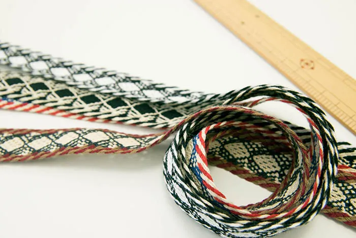 レースにも様々なタイプがありますが、トーションレースとは、色々な種類の糸を編機の中心に向かってからめて、テープ状に編み上げて生産されるものを指します。