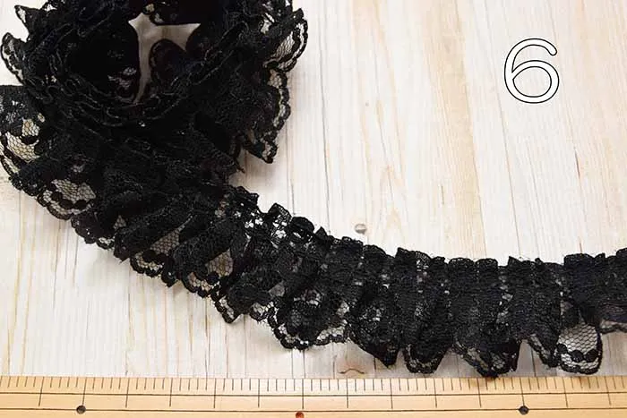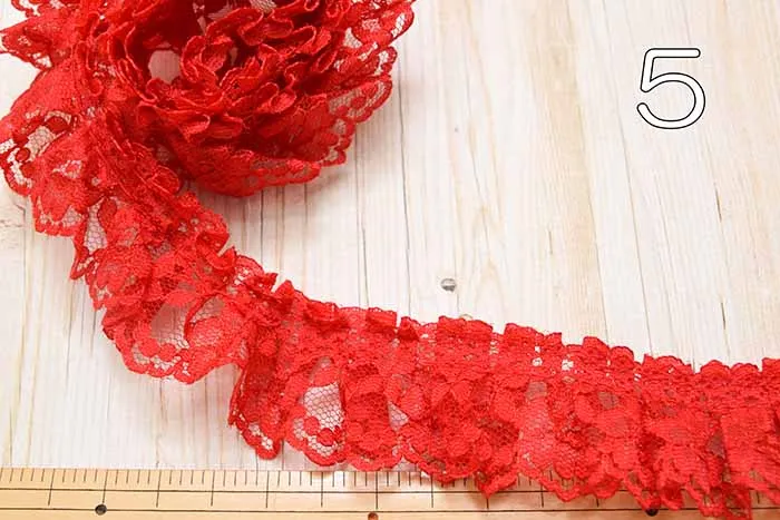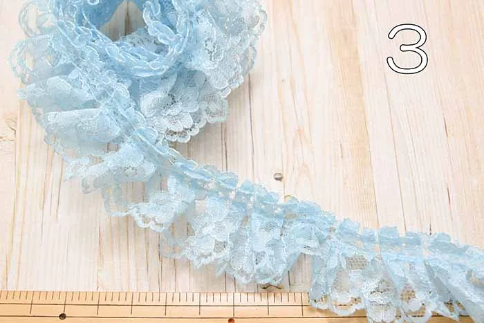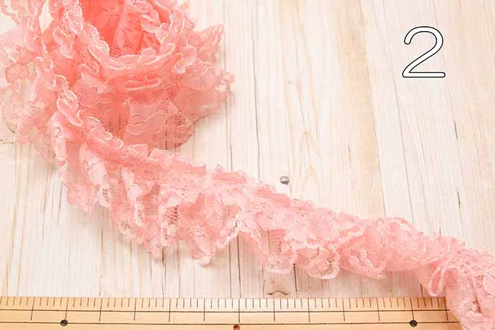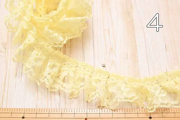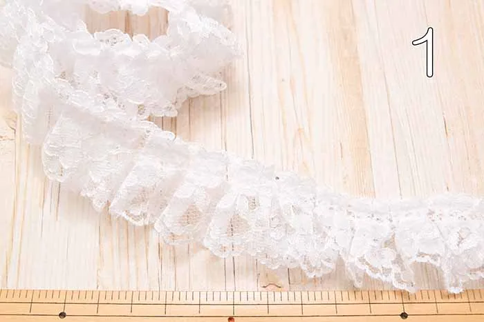 リバーレースに類似した製品ですが、ラッセルレースは経編機(たてに編んでいく機械)の1種で、柄模様は編み組織からできています。