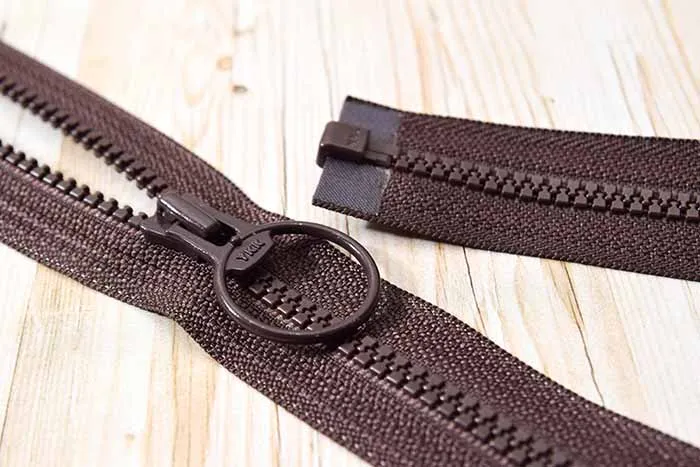 YKK社の引手がリングタイプの樹脂製"ビスロン" オープンファスナーです。