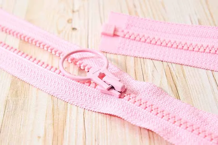 YKK社の引手がリングタイプの樹脂製"ビスロン" オープンファスナーです。