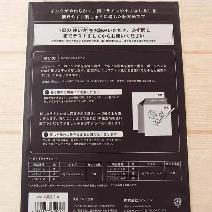 刺しゅうのトレース用として特別に開発された転写紙です。