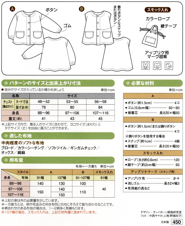 パターン 型紙 前あきスモック
