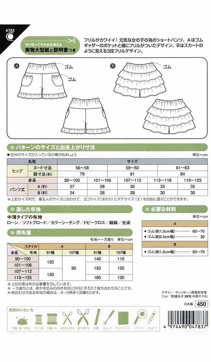 パターン 型紙 こども フリルパンツ