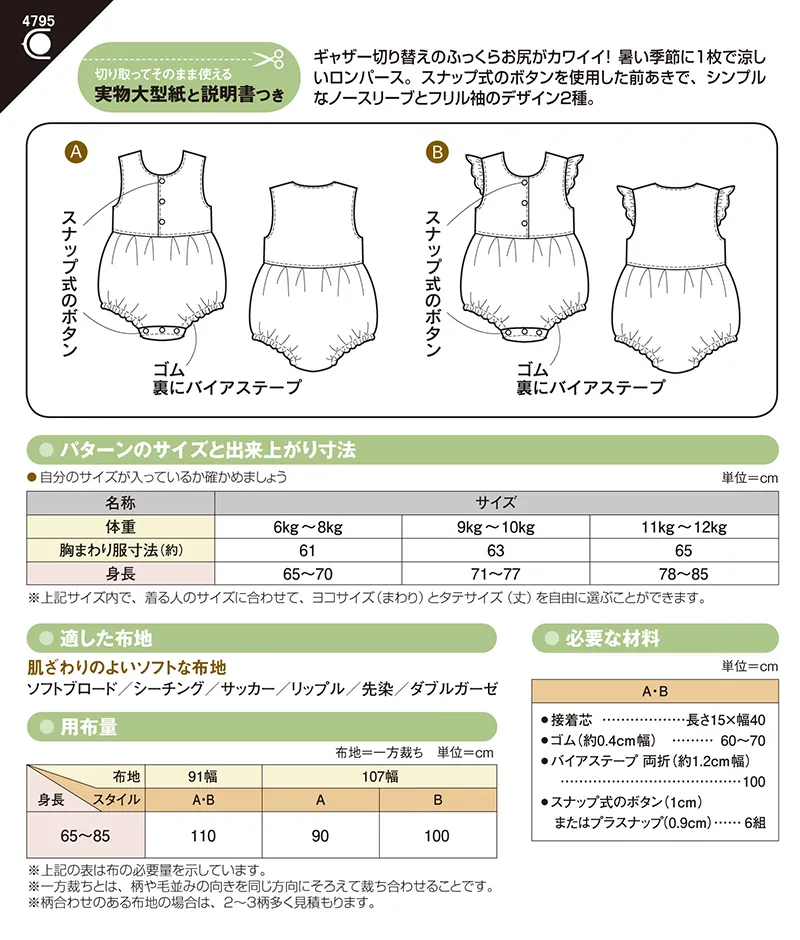 パターン・型紙 ベビーロンパース