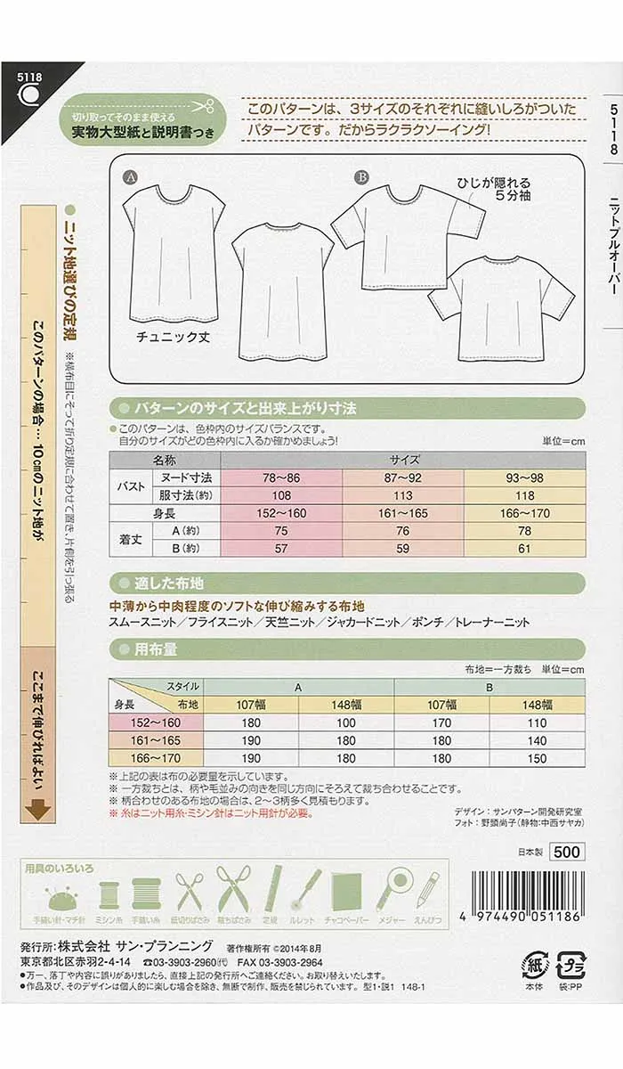 ※糸はニット用糸、ミシン針はニット用針が必要です。