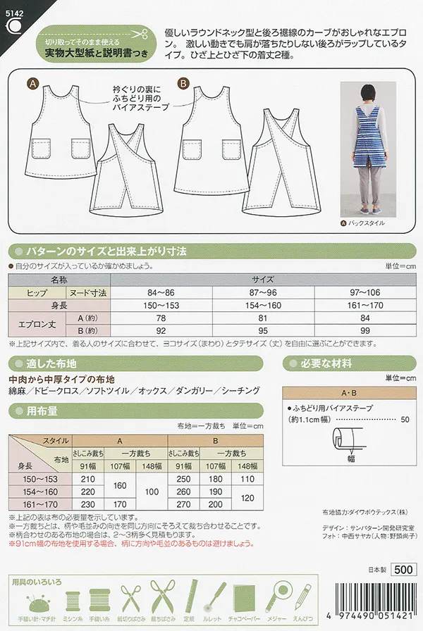 パターン 型紙 イージーエプロン
