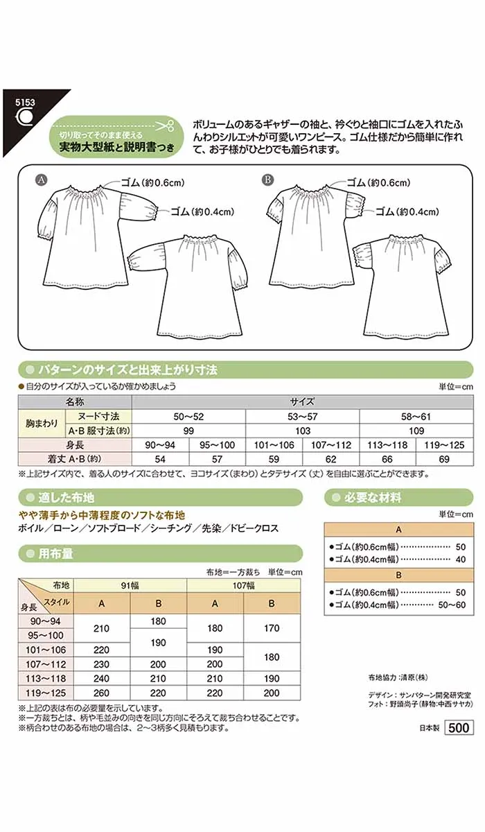 ゴム仕様だから手作り初心者さんでも簡単に作れて、お子様がひとりでも着られます。