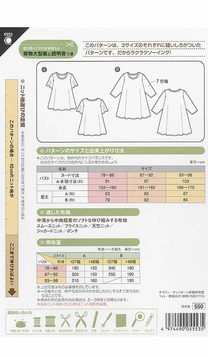 適した布地:中薄から中肉程度のソフトな伸び縮みする布地