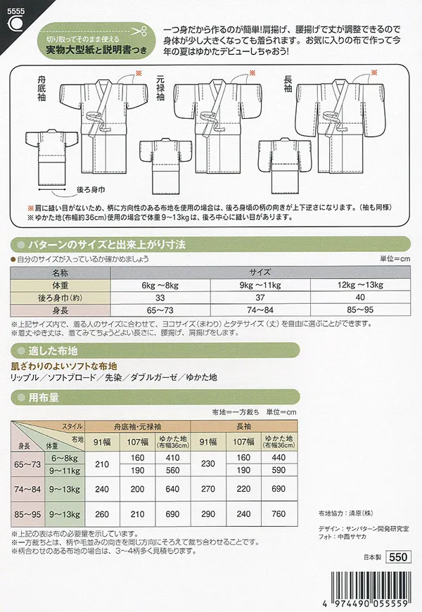 一つ身だから作るのが簡単!肩揚げ、腰揚げで丈が調整できるので、唐田が少し大きくなっても着られます。