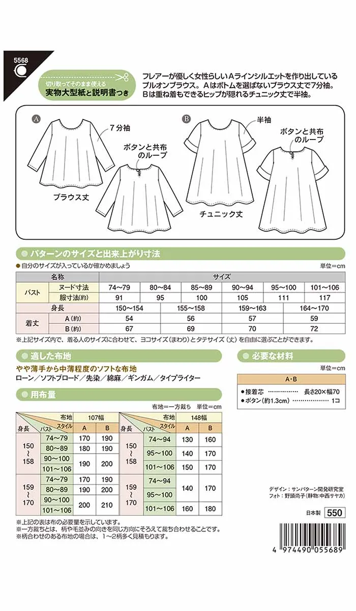 Bは重ね着もできるヒップが隠れるチュニック丈で半袖。
