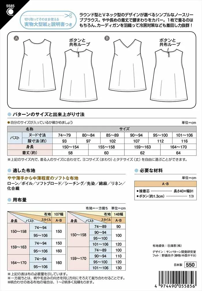 パターン・型紙 ノースリーブブラウス