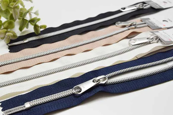 軽いコイルファスナーでありながら、金属ファスナーの重厚感を演出することが出来るファスナーです。