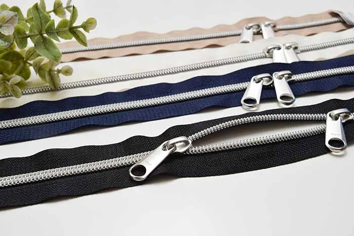 軽いコイルファスナーでありながら、金属ファスナーの重厚感を演出することが出来るファスナーです。