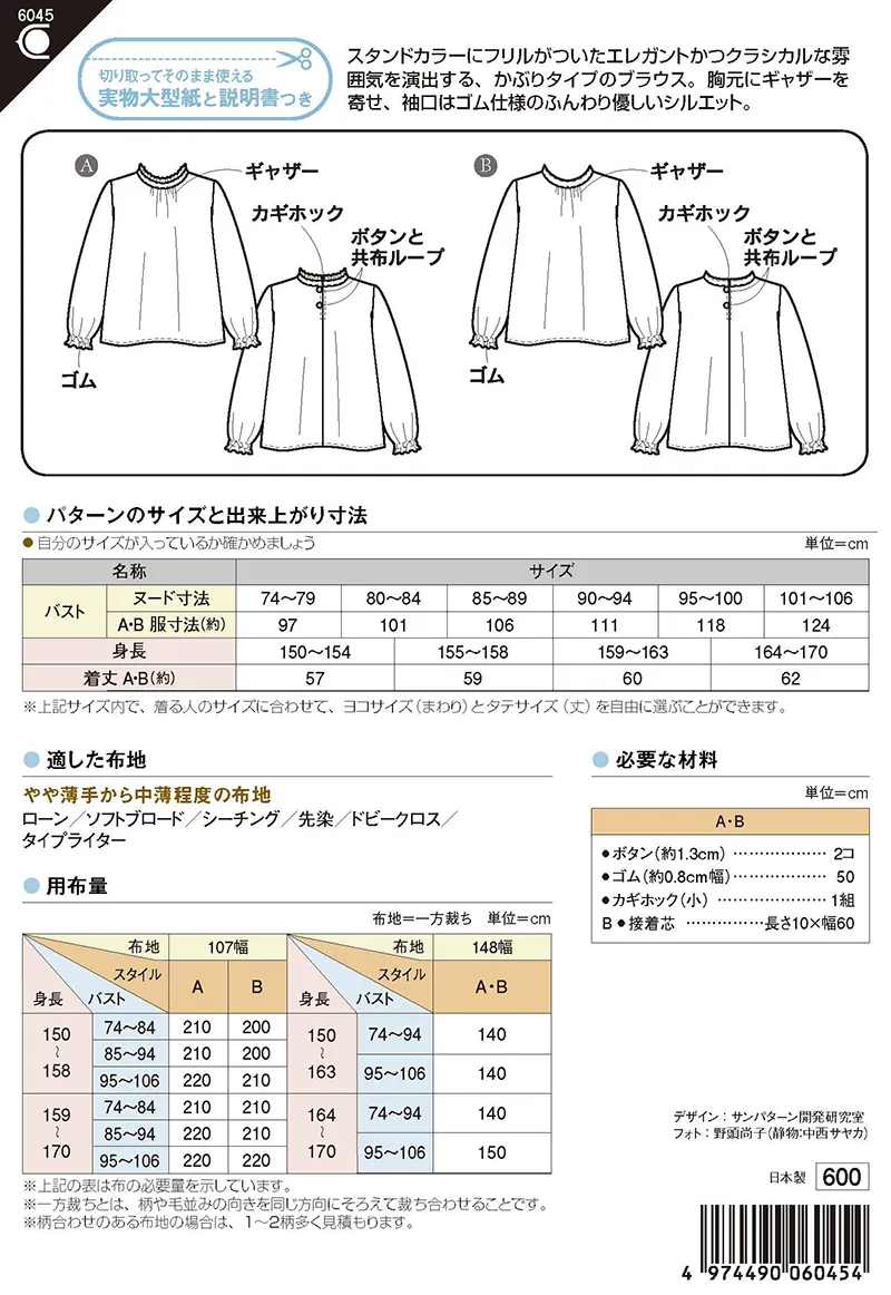 パターン・型紙 フリルカラーブラウス