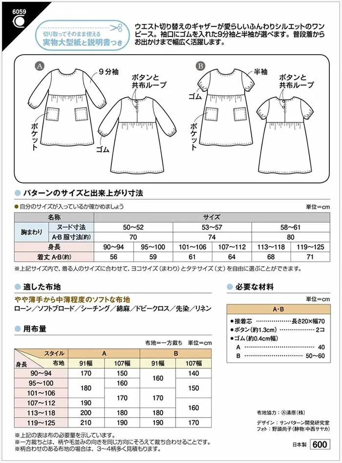 布地選びで、普段着からお出かけ、入園入学式まで幅広く活躍します。