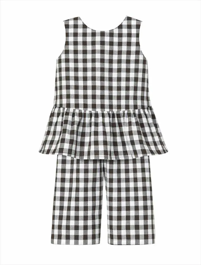 ノースリーブトップスとパンツのセットアップ。