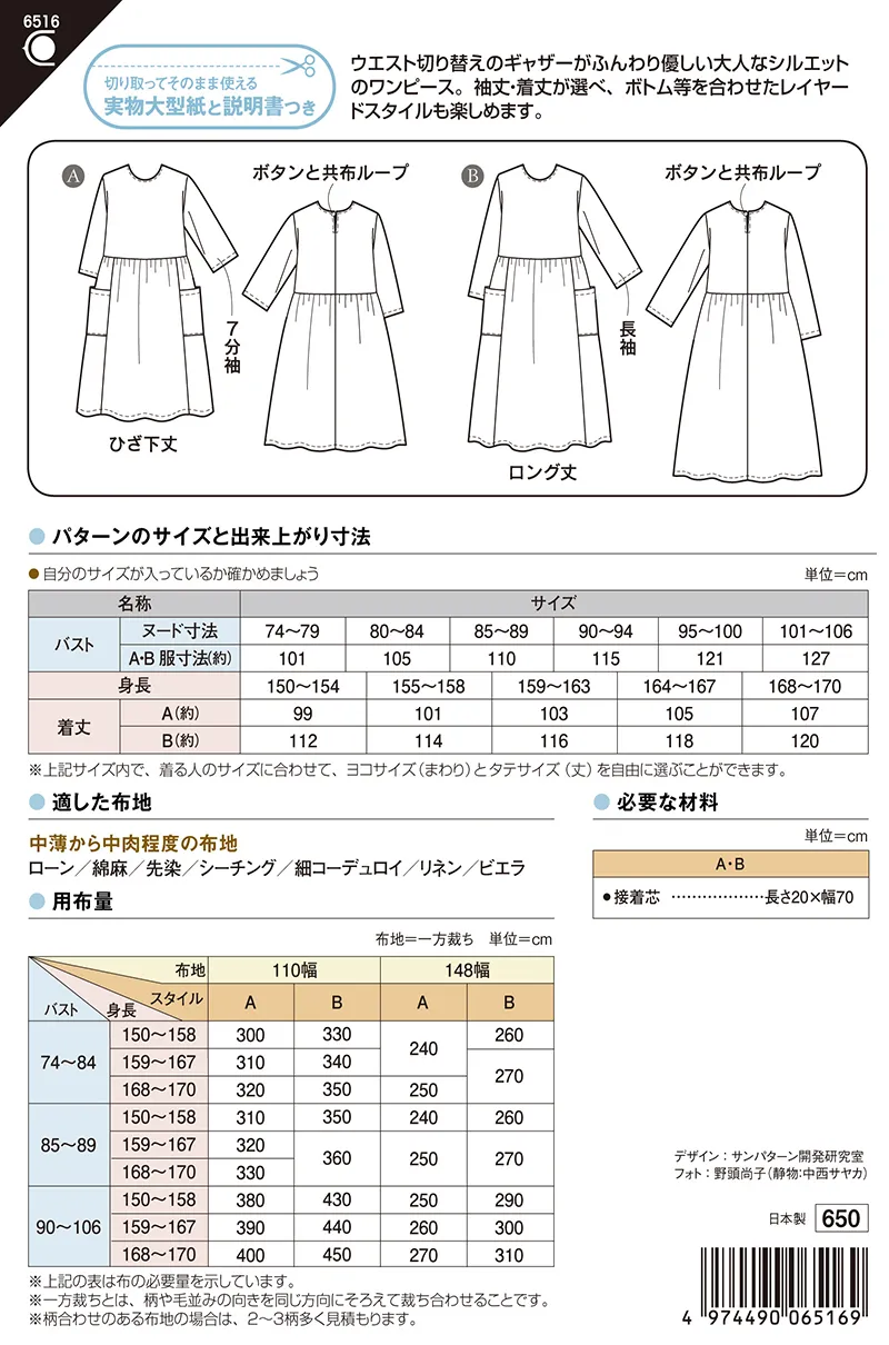 パターン 型紙 ウエストギャザーワンピース