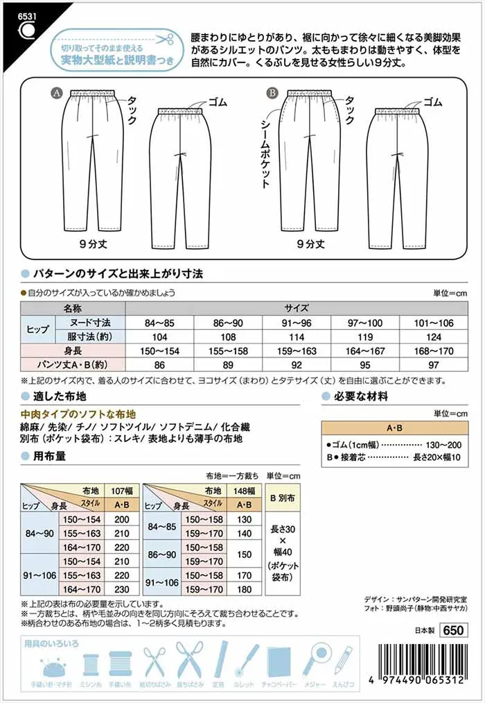 パターン・型紙 ウエストゴムのテーパードパンツ
