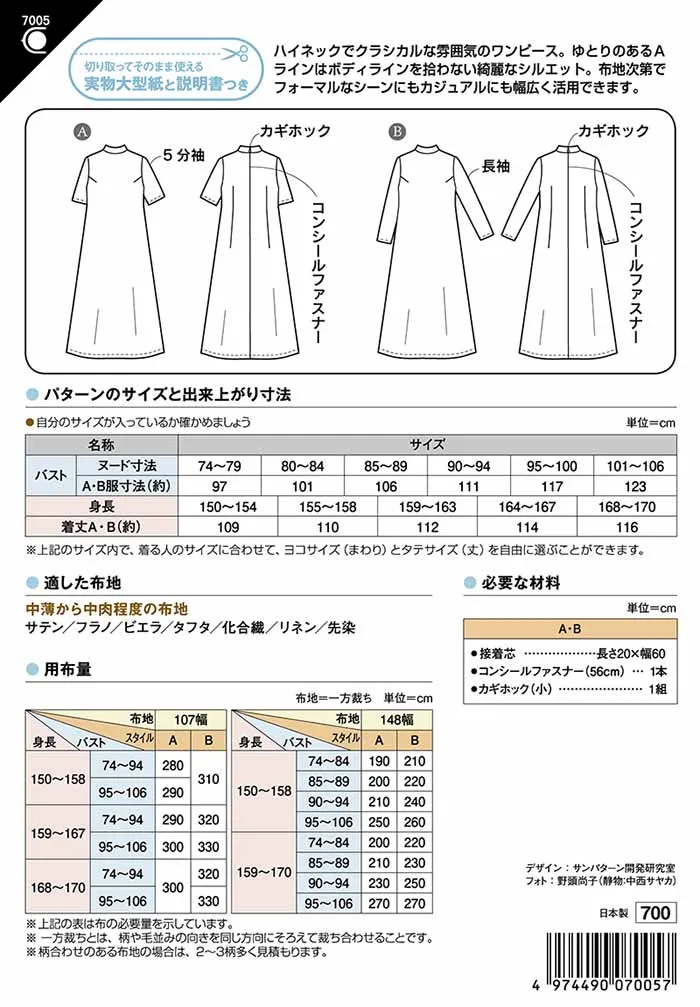 ゆとりのあるAラインはボディラインを拾わず、パターンニングですっきりと綺麗なシルエットになるようにこだわり、きちんと見えてゆったりと楽に着ていただけます。