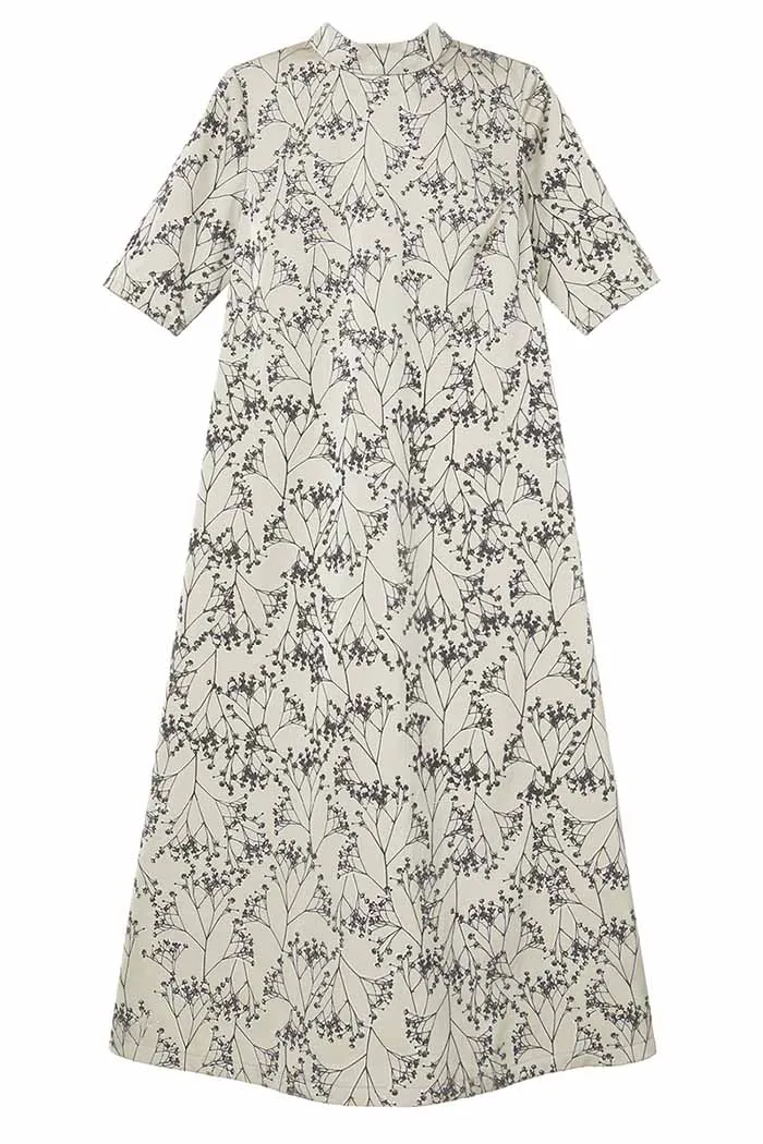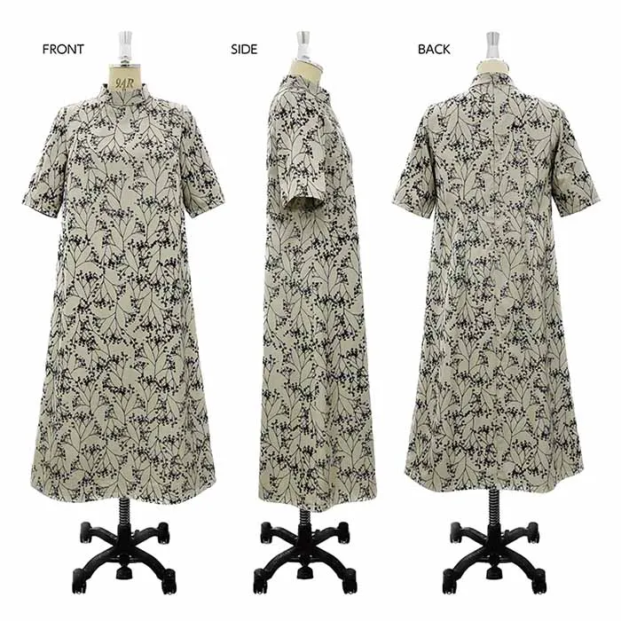 ハイネックでクラシカルな雰囲気のAラインロングワンピース。