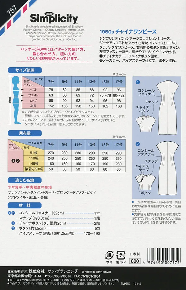 右前斜めボタン留めデザイン、左脇ファスナーあき。