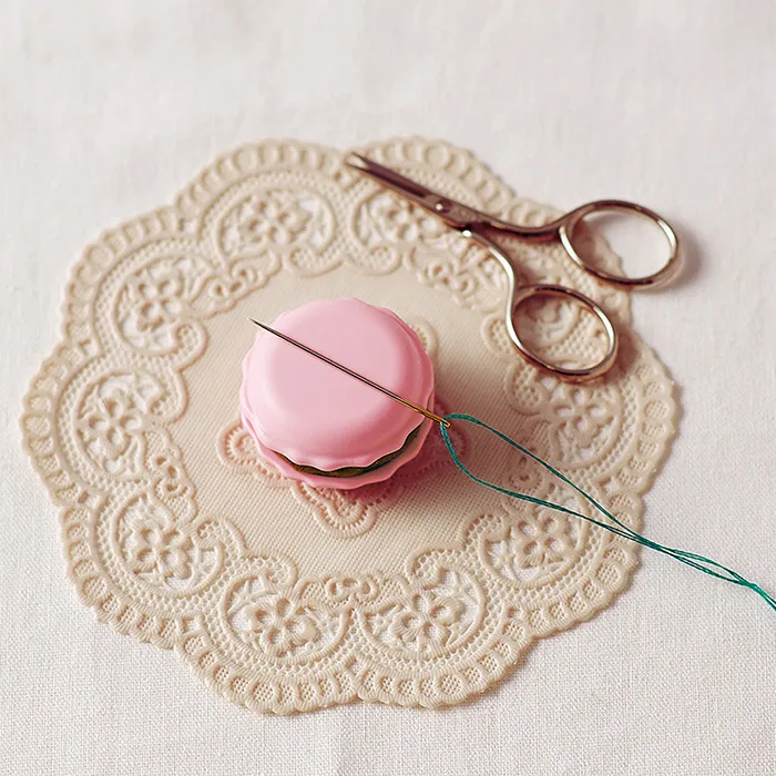 「針やすめ」は、マグネットの力で針をキャッチします。針仕事の途中に一時的に針から手をはなしたい(仮置きしたい)時に便利です。