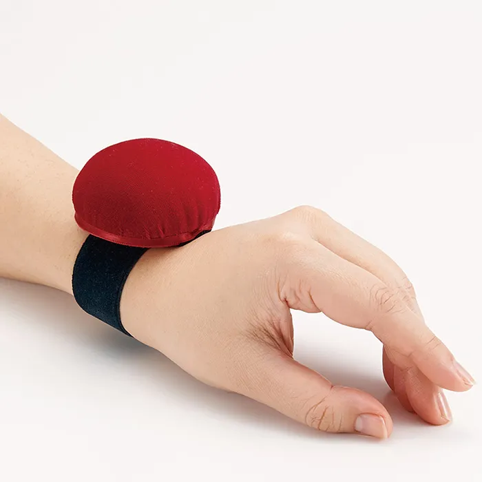板パネル式。付けはずしがワンタッチ、ソフトな風合いの生地で手首や腕にやさしくフィットします。