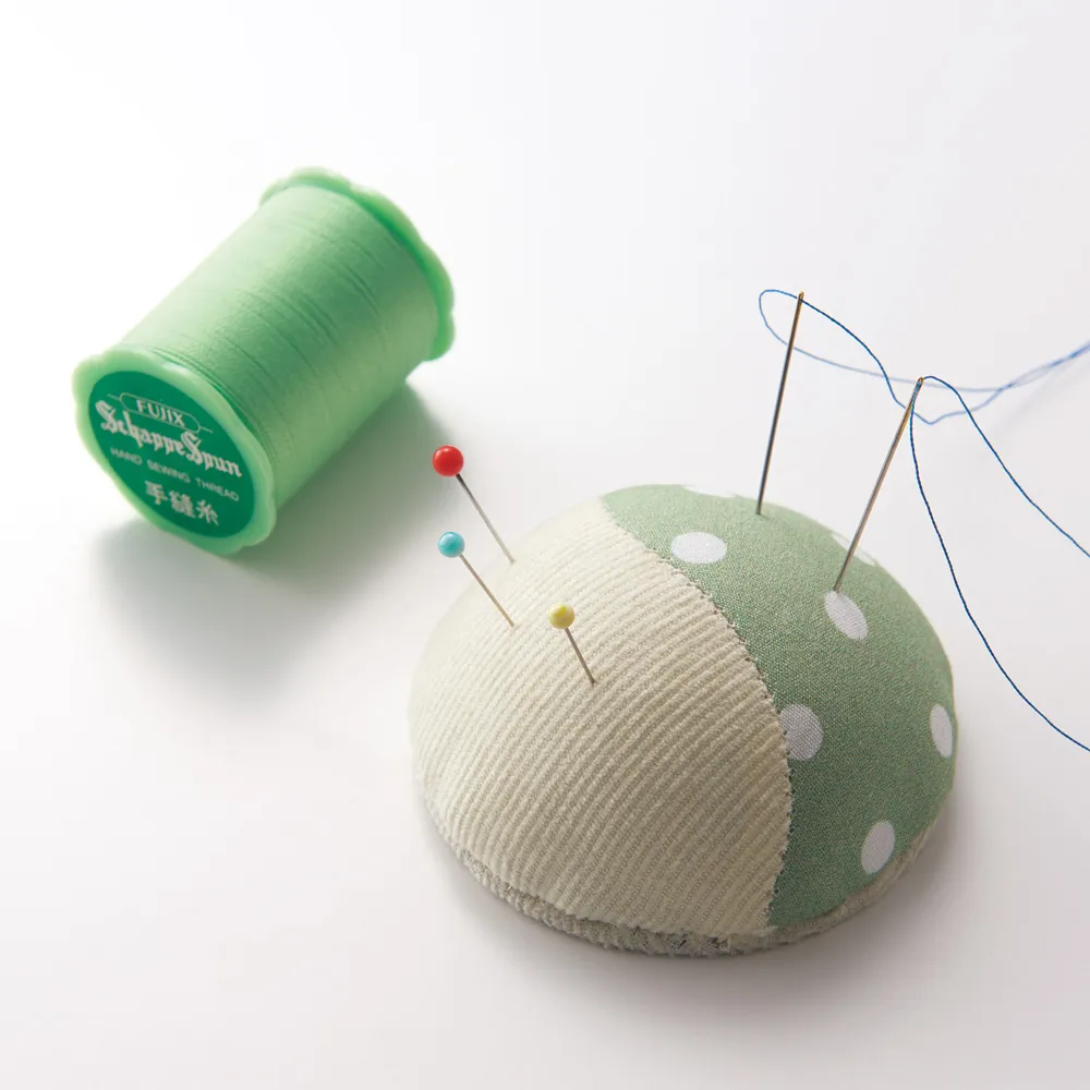 ピンクッションが2色に分かれているので、針の種類に応じて刺す場所を使い分けると便利です。