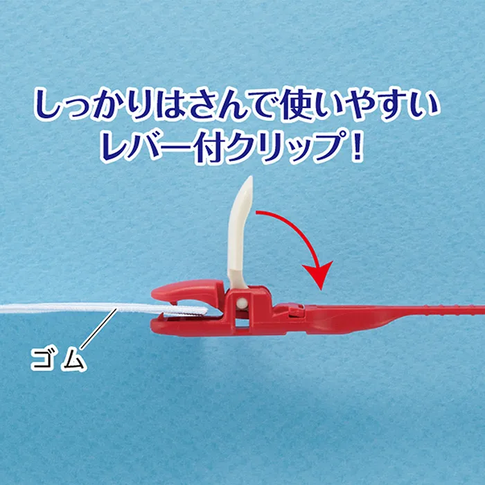 強力クリップではさむので、通す途中でゴムが落ちず、ゴムを折らずにそのまま通せます。