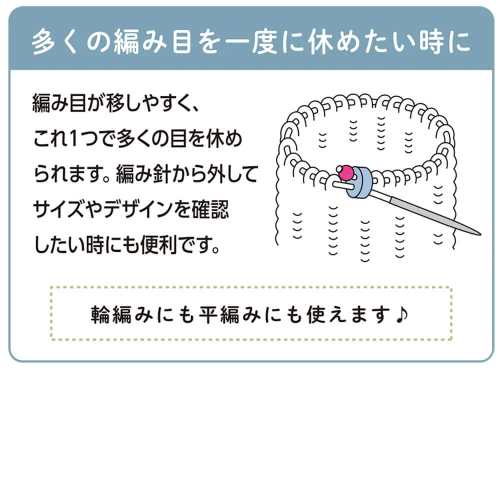 輪編みにも平編みにも使え、一度に多くの編み目を休めたいときに適しています。