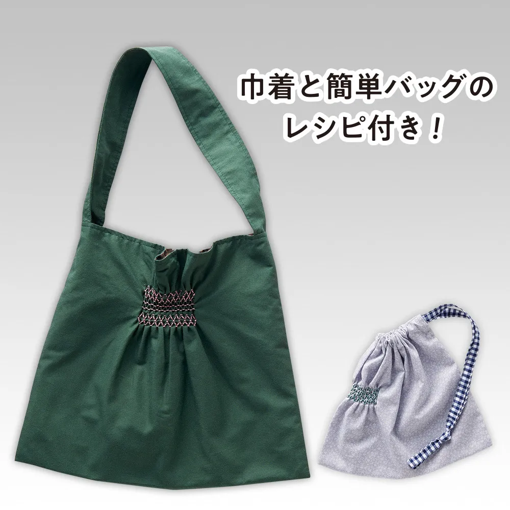 用意するものは、お好みの生地や洋服、エコバッグなどスモッキングするもの。