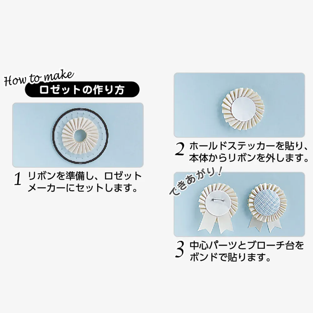 均等にプリーツが折れるオリジナル設計のロゼットメーカーとロゼットが1個作れるパーツセットが1組入っています。