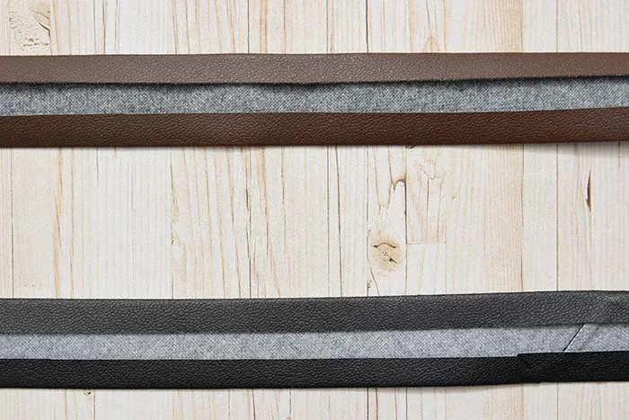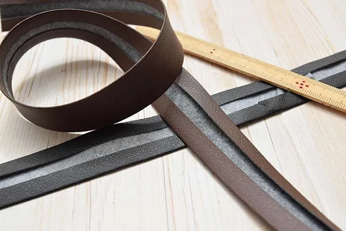家庭用ミシンで、テフロン押さえなしで簡単に縫える合皮のバイアステープです。