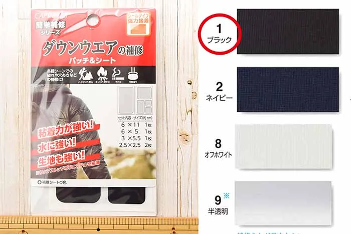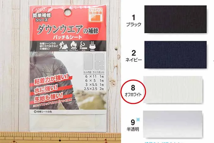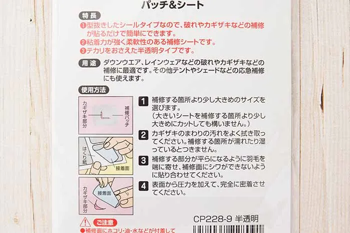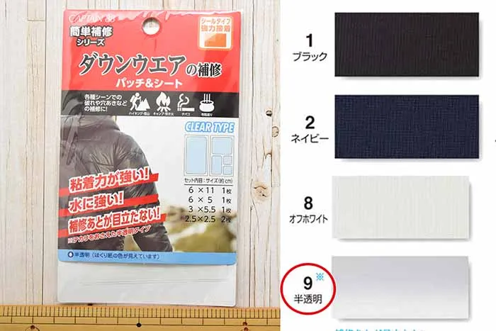 水に強いシールタイプのダウンウェアの補修パッチ&シートです。