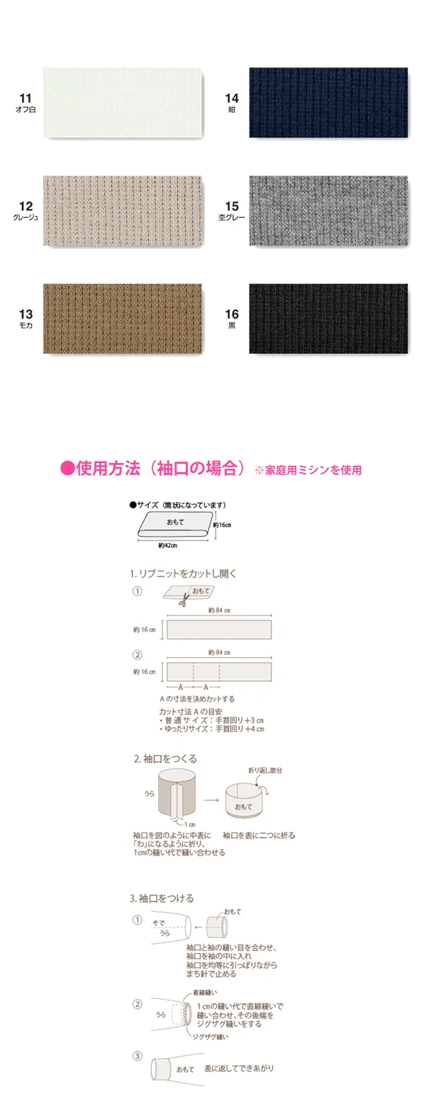 トレーナーや子供服、ペットウエアなどの袖口・衿などにおすすめのニット生地。