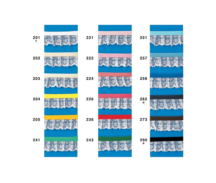 すそにレースがついたかわいらしいバイアステープです。タックが入っているので縫い付けが簡単にでき、手軽にキュートなアレンジが完成します。