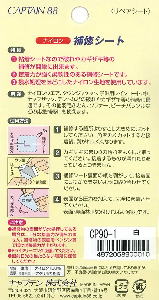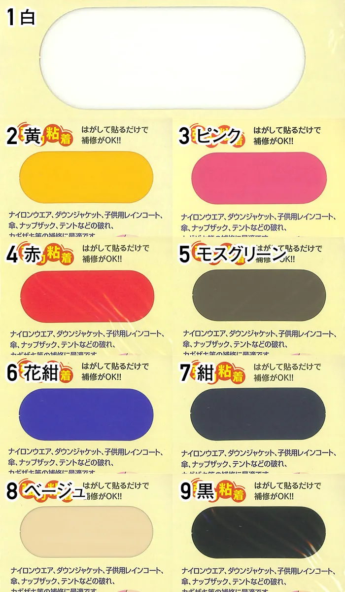 粘着シートなので、子供用レインコート、傘などのやぶれやカギザキ等の補修が簡単にできます。