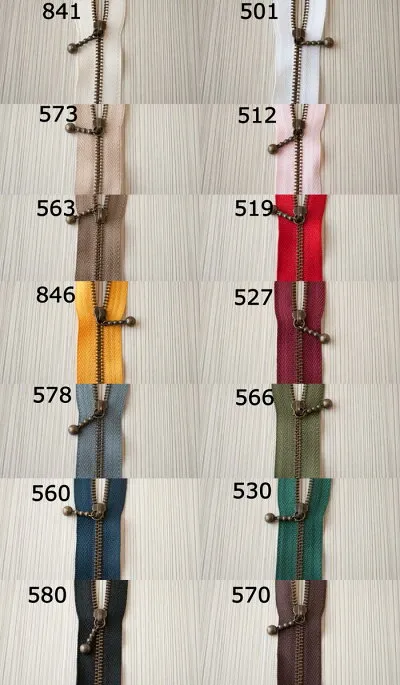 YKK金属ファスナー玉付き 3号サイズ 35cm【アンティークゴールド】
