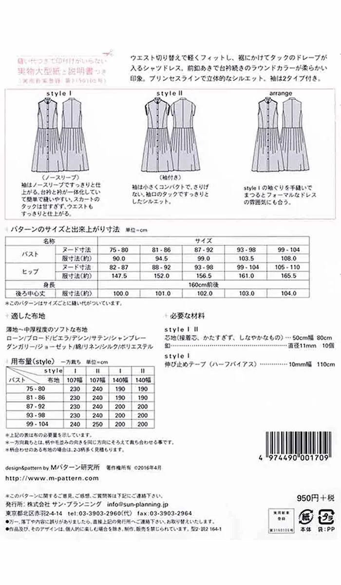 パターン 型紙 タック2スリーブシャツドレス