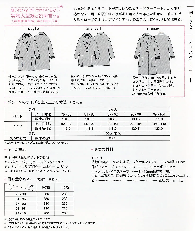 パターン 型紙 チェスターコート