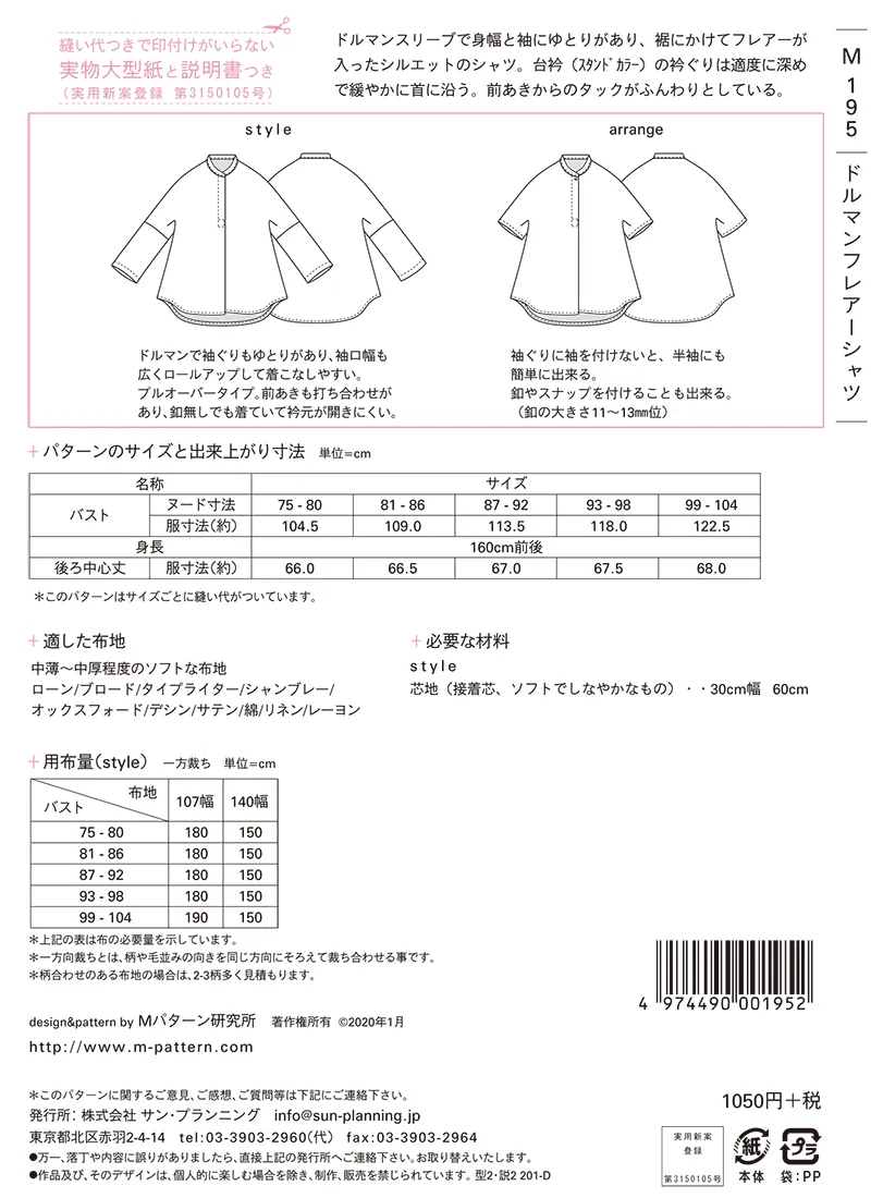型紙・パターン ドルマンフレアシャツ