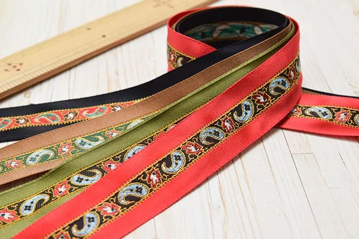 エスニックなペイズリー柄で使いやすい幅のリボンです。