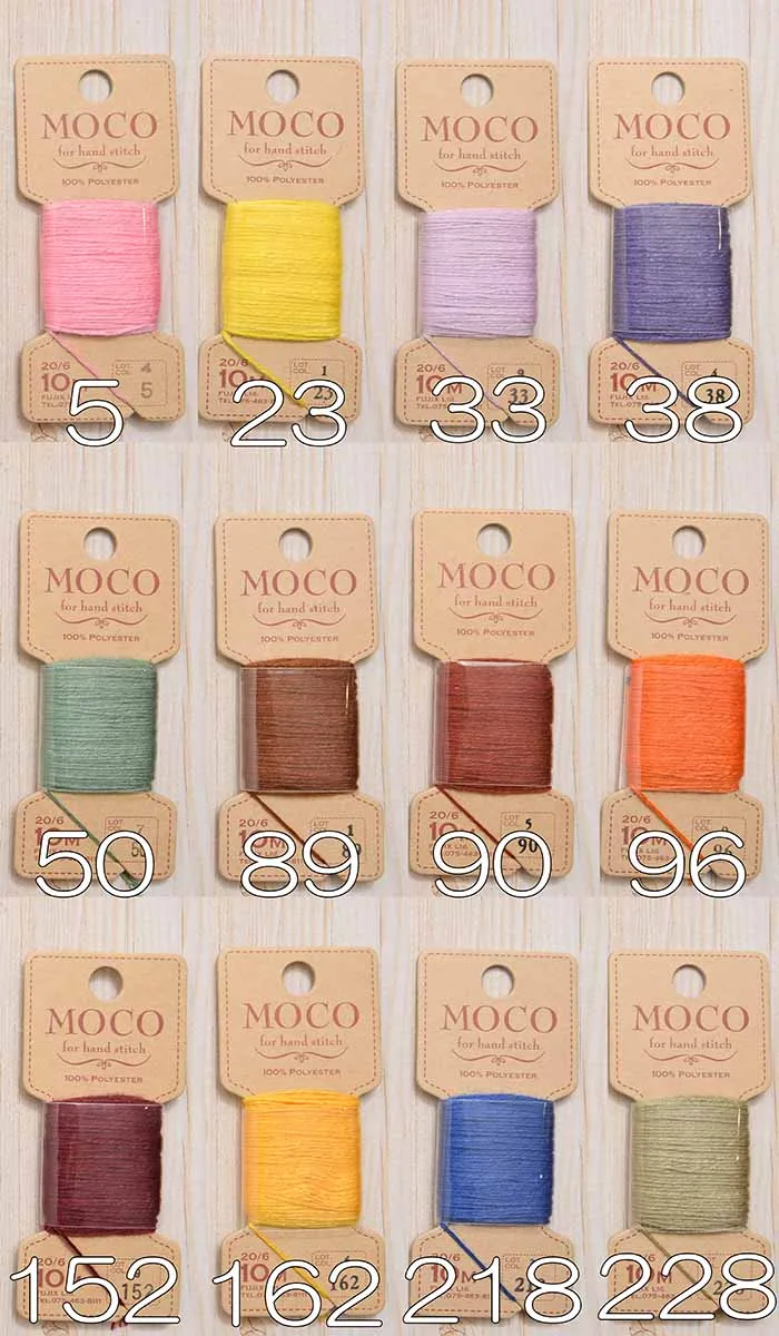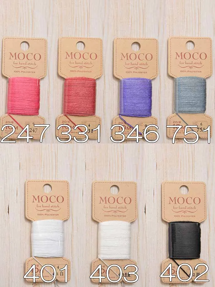 ポリエステル100%で光沢のない1本どりのMOCOは、スムーズな縫い心地でどんな素材に もマッチします。