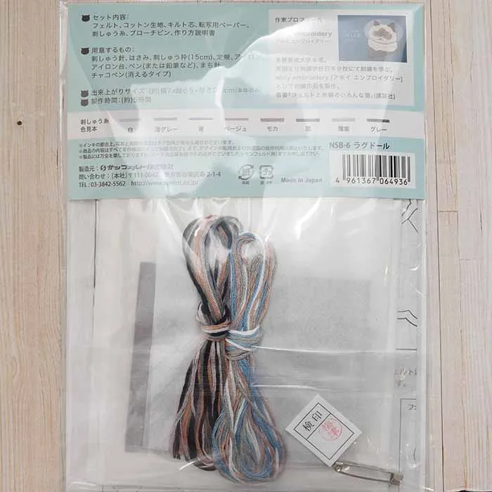 セット内容 : フェルト、コットン生地、キルト芯、転写用パーパー、刺しゅう糸、ブローチピン、作り方説明書