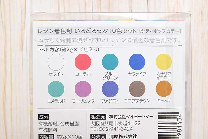 様々なレジン作品の制作にお役立ちの10色セット。