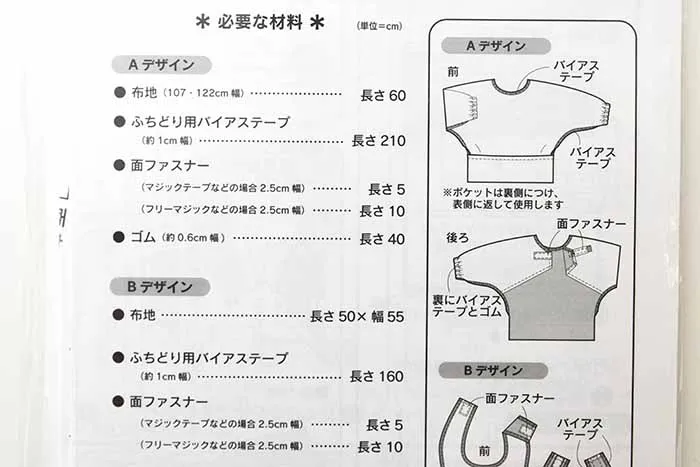 食べこぼしを受け止めるポケット付き。後ろはワンタッチ着脱が楽々。ナイロンの布地でつくるのがおススメです。※パターン・型紙の販売です。